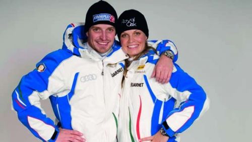 Federica Brignone e Werner Heel sul podio