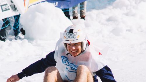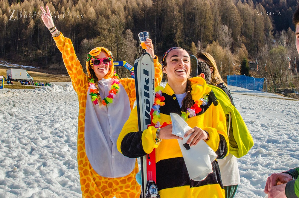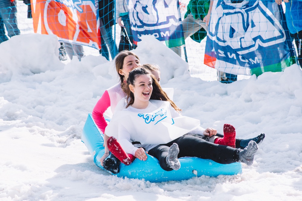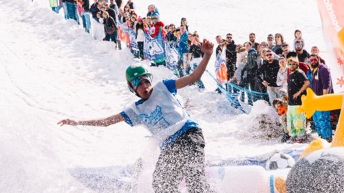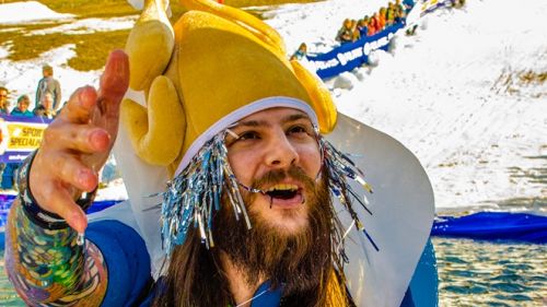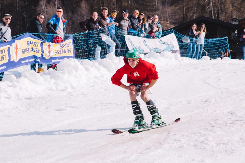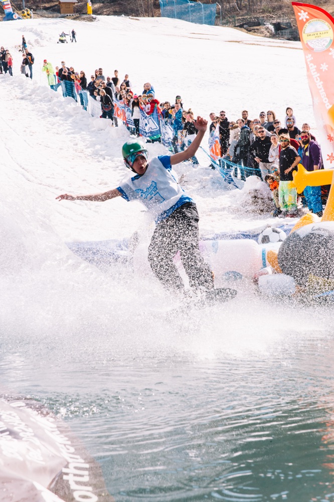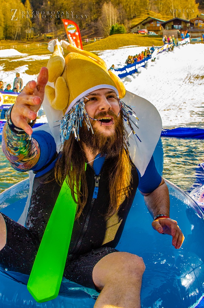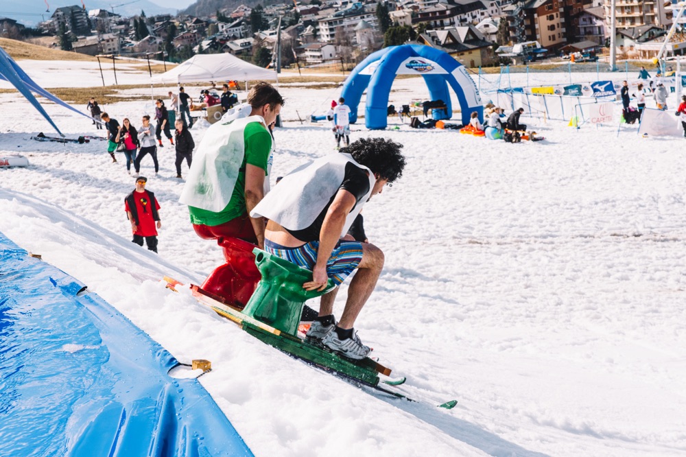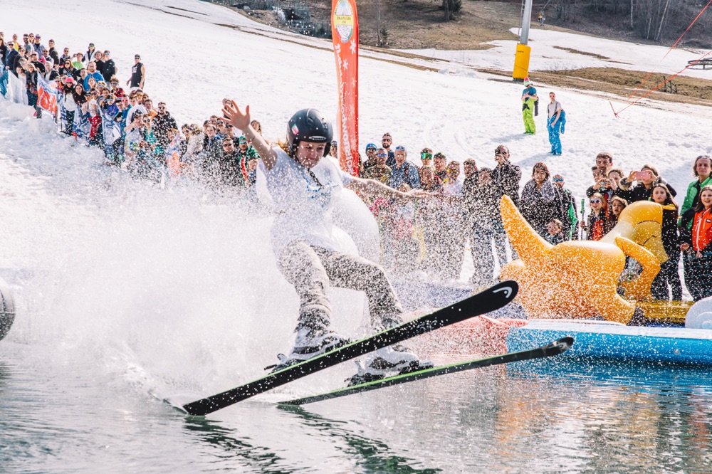 Saranno ammessi sci, snowboard o mezzi di trasporto più fantasiosi come i colorati carri/slitta che concluderanno la loro discesa con un grande splash!