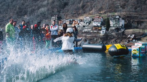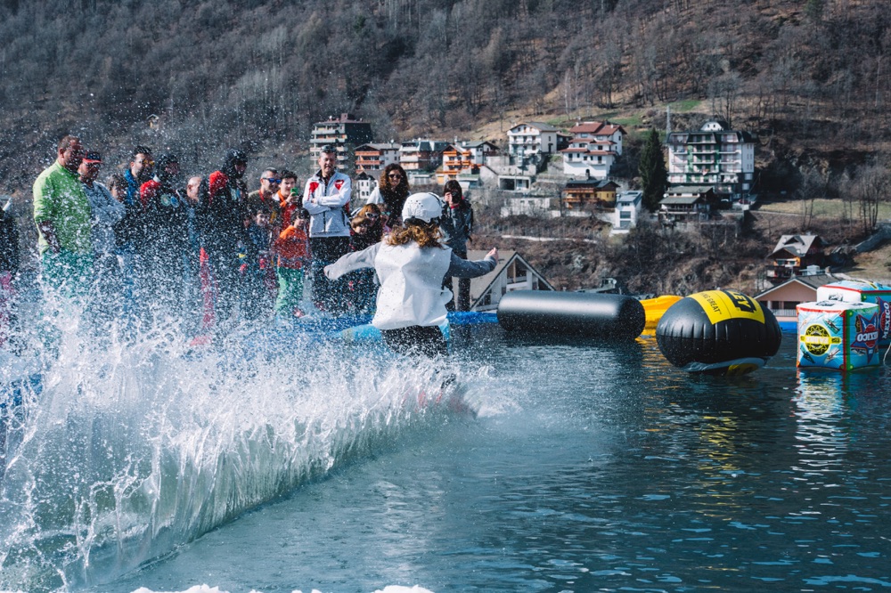 Sarà infatti scavata una piscina nella neve e tutti i presenti potranno testare la propria abilità nel scendere alla velocità giusta e con i movimenti migliori per riusciare a planare con gli sci sull'acqua!
