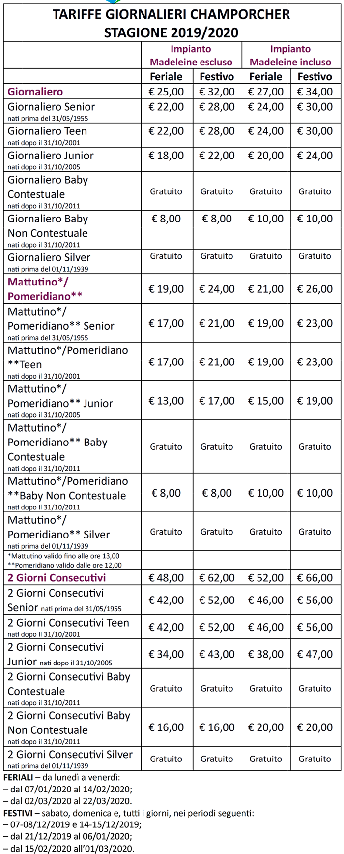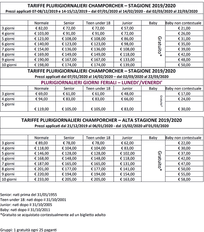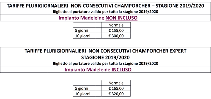 Skipass Pluri-Giornalieri Champorcher 2019/2020