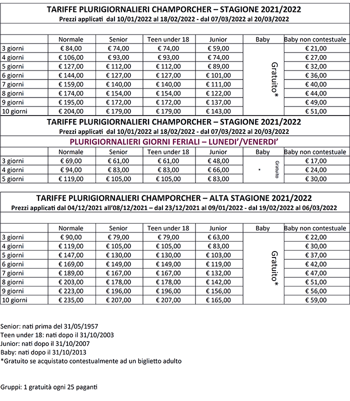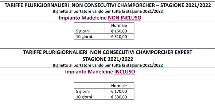 Skipass Pluri-Giornalieri Champorcher 2021/2022