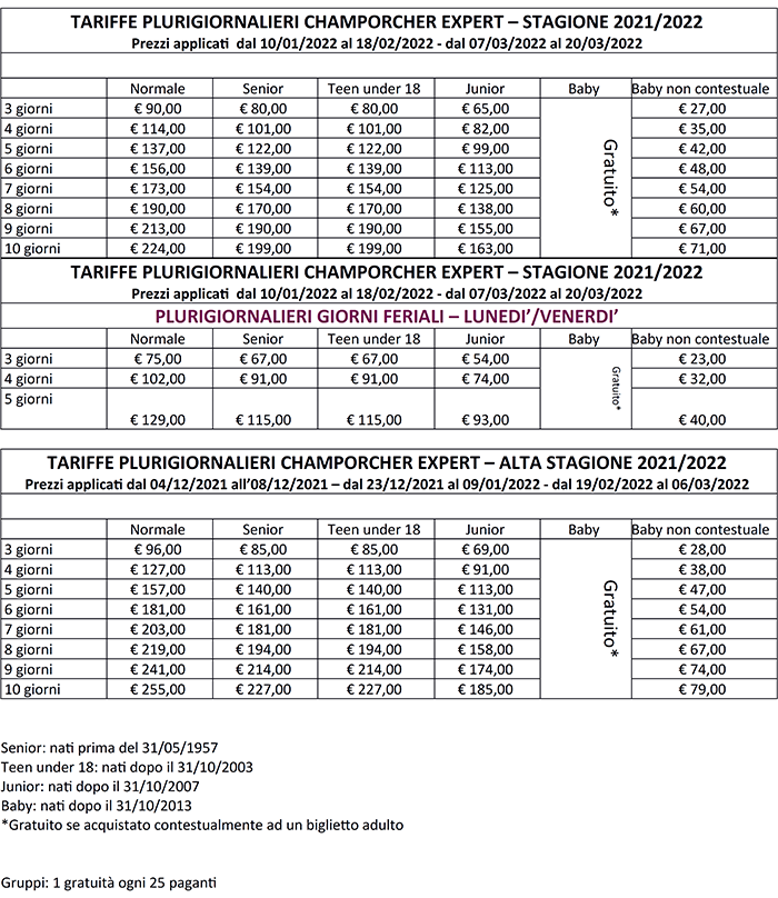 Skipass Pluri-Giornalieri Esperti Champorcher 2021/2022