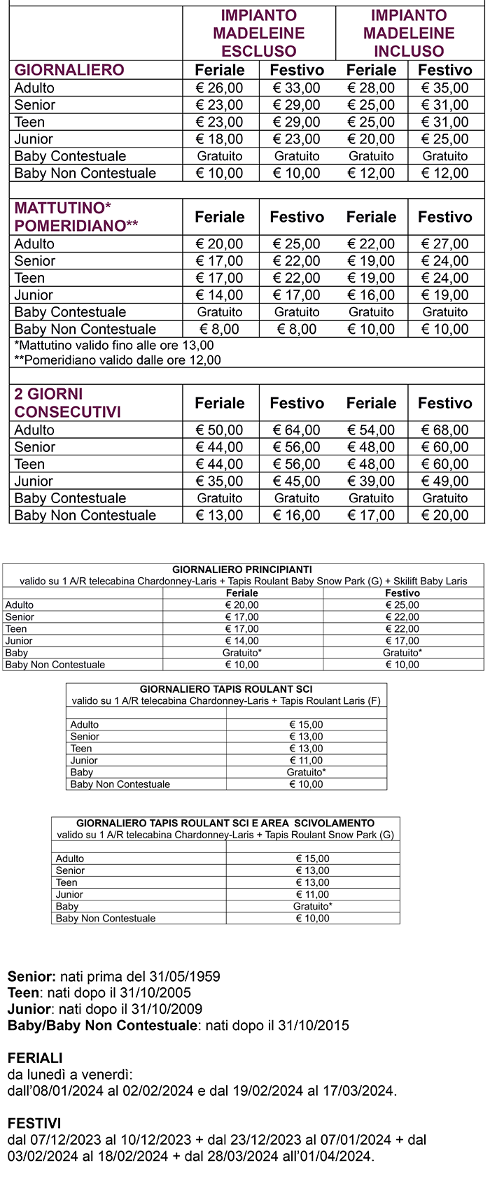 Skipass Giornalieri Champorcher 2023/2024
