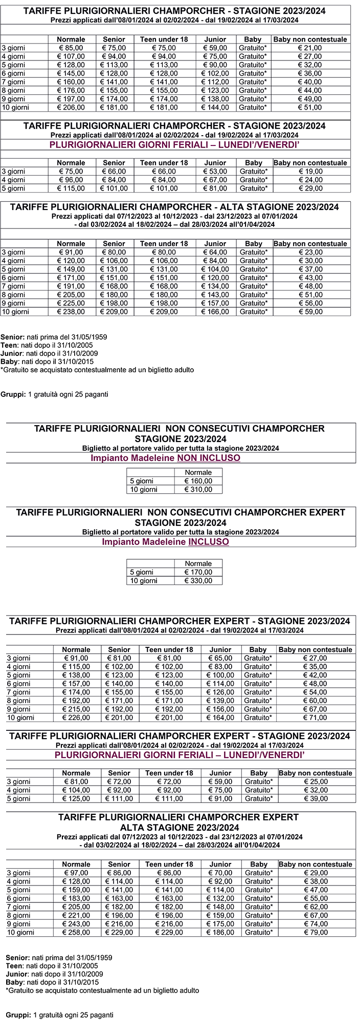 Skipass Pluri-Giornalieri Champorcher 2023/2024