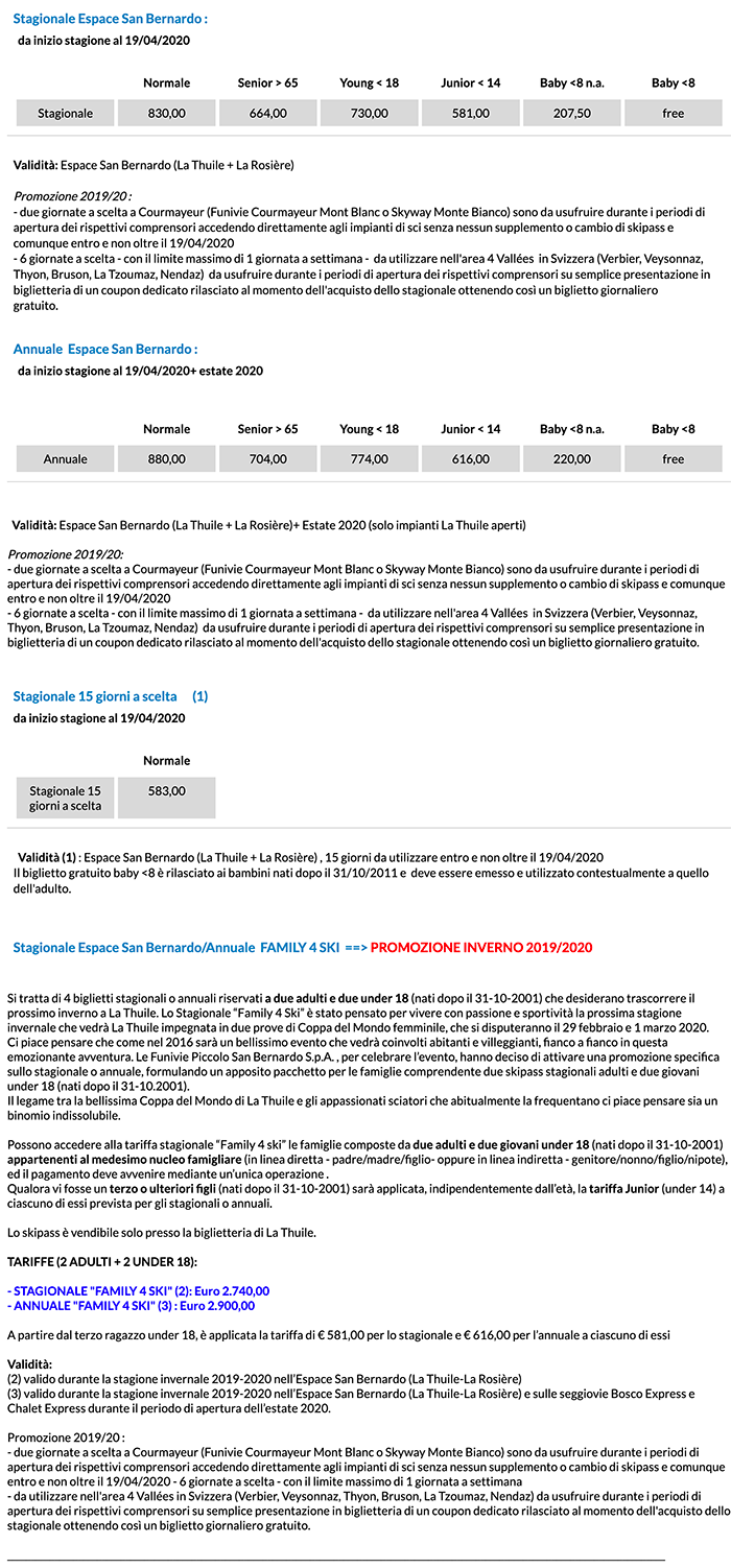 Skipass La Thuile Piccolo San Bernardo 2019/2020