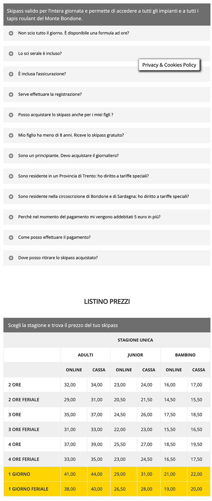 Prezzi Skipass