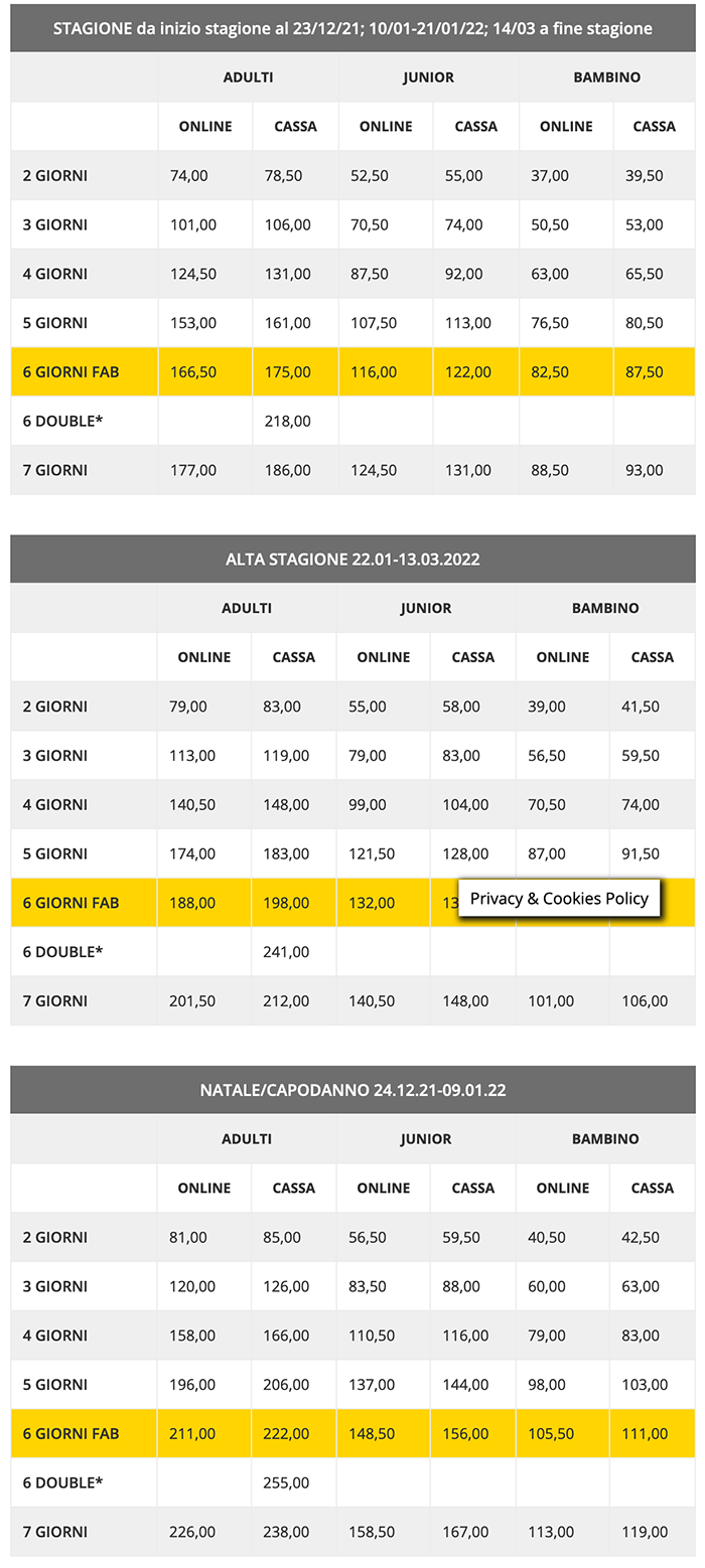 Skipass Plurigiornaliero 2021/2022