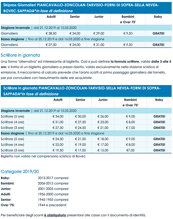 Prezzi Skipass Giornalieri e a ore Piancavallo 2019/2020