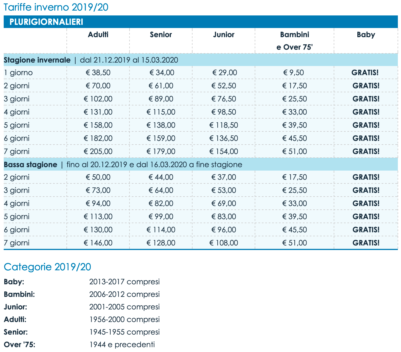 Prezzi Skipass Pluriiornalieri Piancavallo 2019/2020