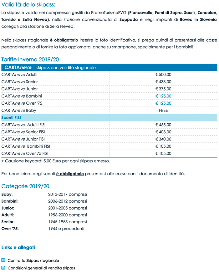 Prezzi Skipass Carta Neve Piancavallo 2019/2020