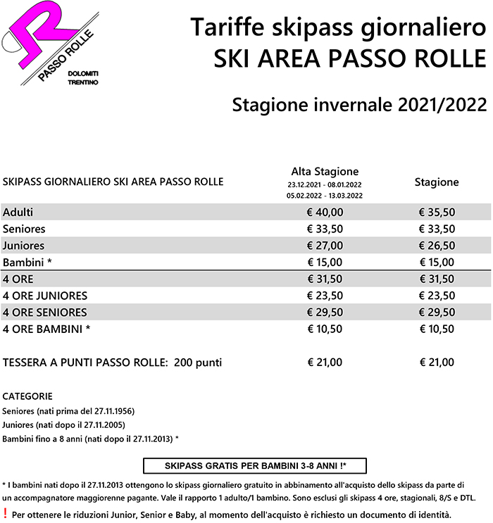 Skipass San Martino di Castrozza - Passo Rolle 2021/2022