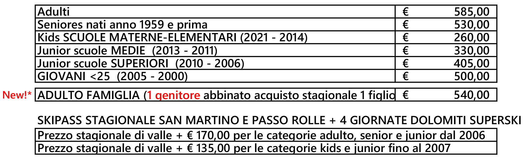 Skipass San Martino di Castrozza - Passo Rolle STAGIONE