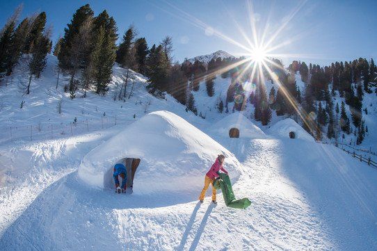Nell’area sciistica di Speikboden, in Valle Aurina, si può provare la magia di dormire sotto le stelle in una igloo a 2000 metri di altezza. Non lontano dalla stazione a monte della cabinovia Speikboden si trovano l’igloo ristorante, l’igloo alloggio e la sauna alpina completa di piscina riscaldata insieme a una grande tinozza pronta per gli ospiti.