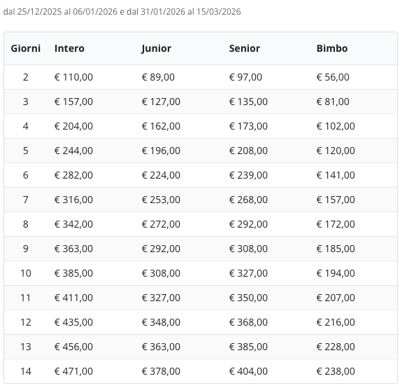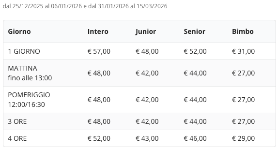 Pluri-giornaliero Alta Stagione Madesimo 2025/2026