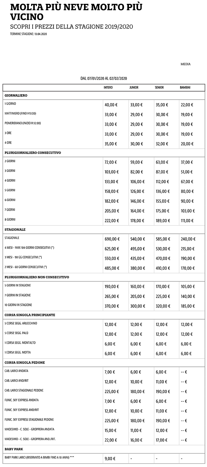 Skipass Madesimo Valchiavenna 2019/2020 Media Stagione