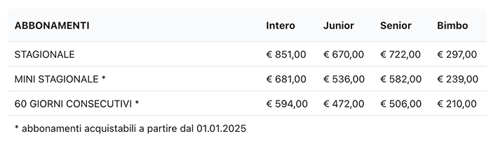 Skipass Plurigiornalieri Madesimo Valchiavenna 2024/2025