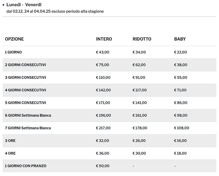 Prezzi Skipass