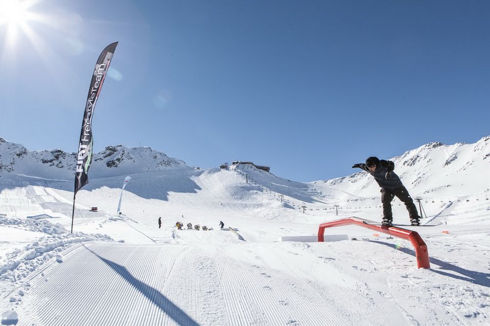 Lo snowpark di Val Senales è chiamato Gentlemenriders Snowark Val Senales ed anche quest'anno gli shapers di F-Tech hanno tirato a lustro le strutture per offirvi una session nel loro park fino a primavera inoltrata. Sponsorizzato anche quest'anno da Fiat Freestyle Team che sarà una garanzia per i riders che passeranno dallo snowpark e della qualità dello snowpark stesso. Ci sono strutture per tutti i gusti. Sono stati realizzati 9 table sulla pista “Gletschersee” con circa 20 strutture. Questo significa che dopo la ultima struttura del park “tradizionale” sul ghiacciaio iniziano altre due jibline (una pro e una easy) in parallelo con rispettivamente 9 strutture da jibbare per ogni run. In questo modo avrete la possibilità di girare su 15 strutture differenti ad ogni run. Gli shaper hanno completato la easy kicker line e tra pochi giorni sarà disponibile anche la medium kicker e box line.
