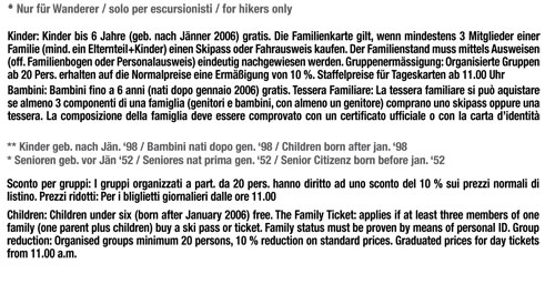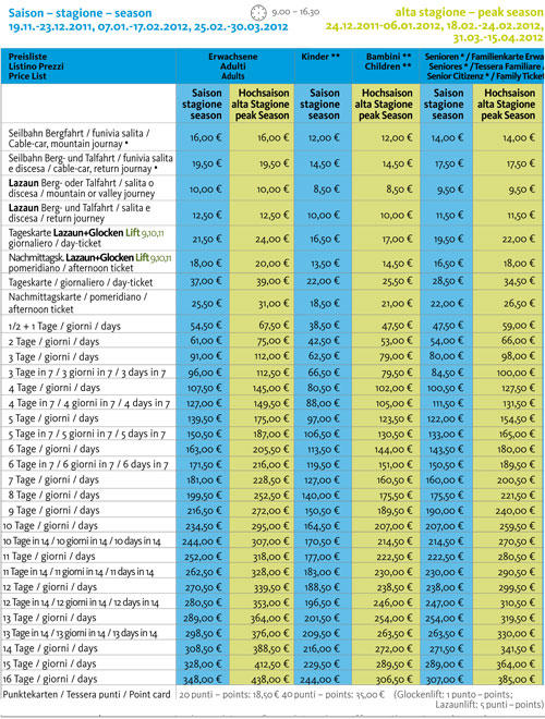 LISTINO PREZZI INVERNALE SKIPASS VAL SENALES 2011/2012