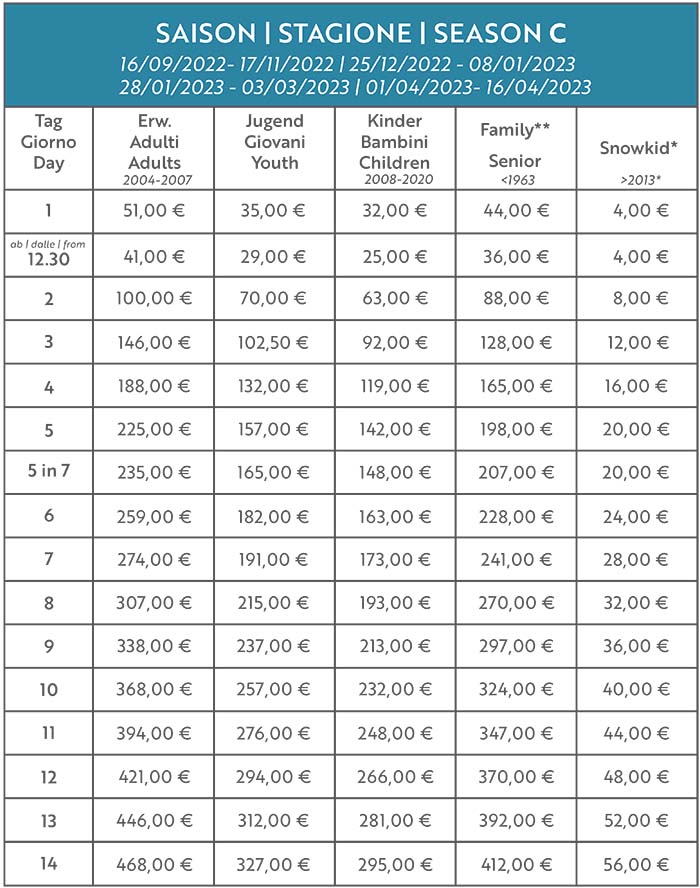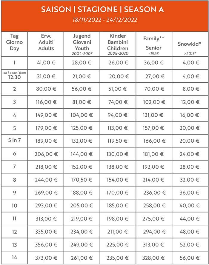 Skipass Val Senales 2022/2023