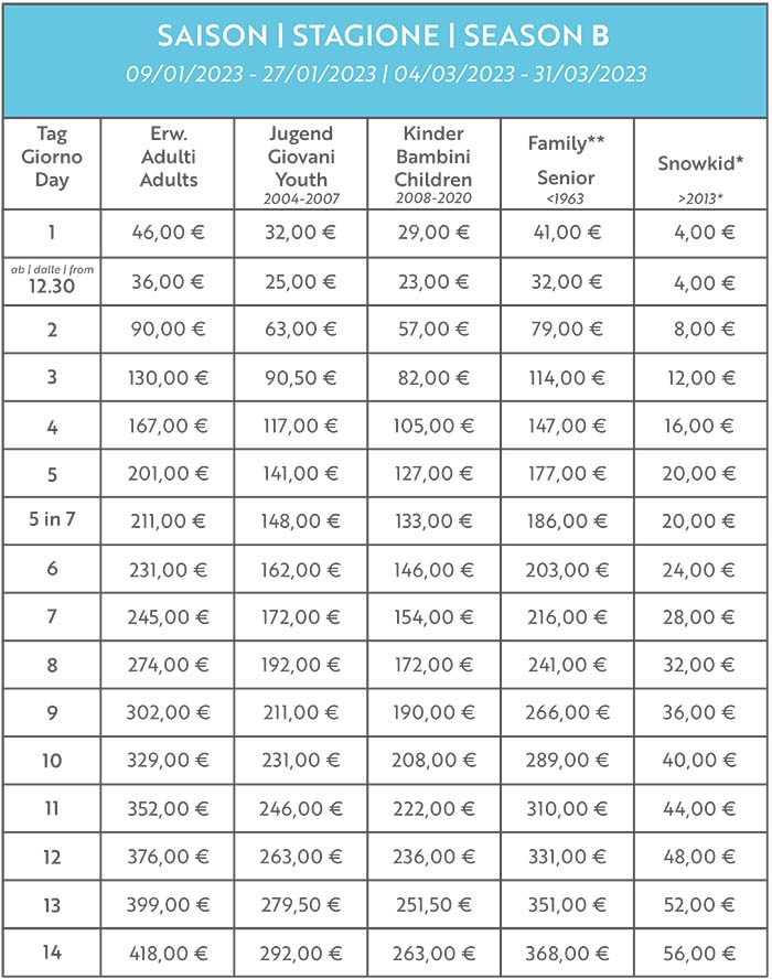 Skipass Alta Stagione Val Senales 2022/2023