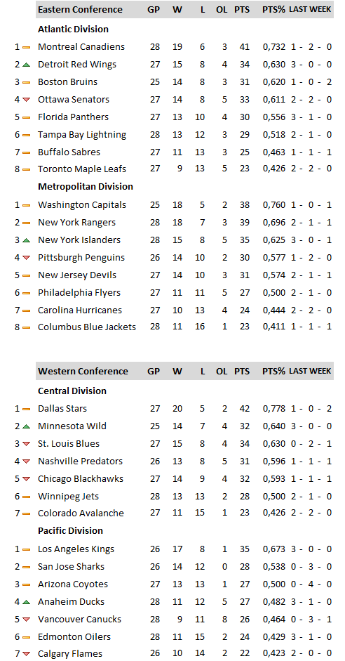 NHL - la classifica aggiornata a domenica 6 dicembre