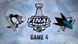 Gara 4 segue il copione già visto nelle gare precedenti: i Penguins vanno in vantaggio per primi - in tutta la serie non si sono mai trovati a inseguire - con il marcatore che non ti aspetti, il difensore Ian Cole che dopo 7:36 va in goal dopo un digiuno di 105 partite. All'inizio del secondo periodo, Evgeni Malkin lascia finalmente il segno in questa serie finale: dopo aver assistito Cole ottiene il suo primo successo finale, il primo goal in superiorità numerica dei Penguins nella serie finale, e spinge sempre più giù le speranze degli Sharks che vengono temporaneamente riaccese solo al minuto 48:07 dal goal di Melker Karlsson. Il goalie Matt Murray chiude la porta ai tentativi di pareggio di San Jose e a due minuti dalla sirena Eric Fehr chiude gara 4 sul 3-1.