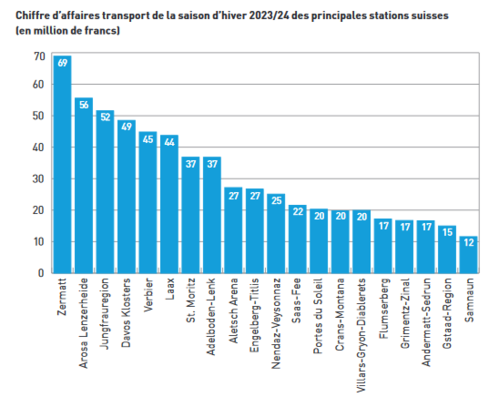 Con riguardo al fatturato dei singoli comprensori sciistici la top20, anche in questo caso guidata da Zermatt, è la seguente: