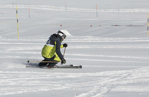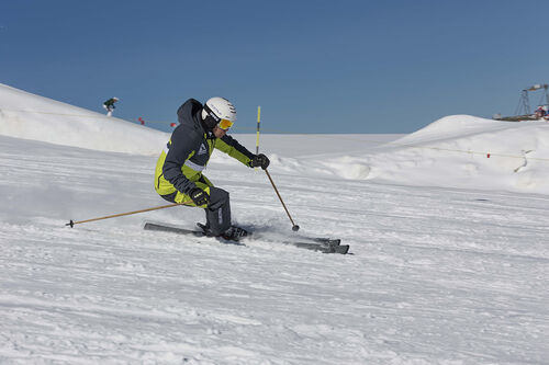 Il terreno del test non ha aiutato, molto compatto sul fondo ma con 10cm di neve fresca, che hanno reso un po’ “sordo” lo sci, “lento nella gestione del cambio e poco reattivo in questo frangente” precisa Giordano Magri.