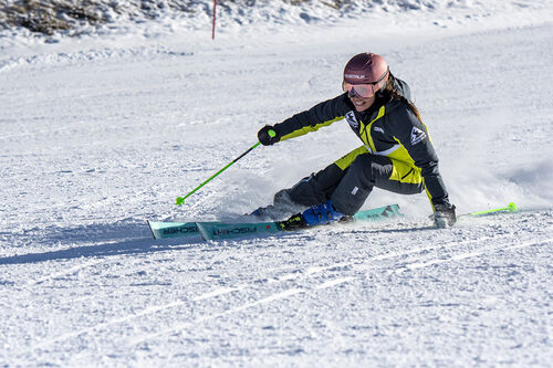 Lo sci è stato molto elogiato da tutto il Test Team per l’ottima presa di spigolo, resa molto intuitiva dalla sciancratura e dalla struttura ben calibrata oltre che dal comfort, riuscendo ad offrire alle sciatrici un prodotto che rende bene in entrambi i raggi: stretto e medio. Lo sci è sempre molto “leggero e manovrabile, entra subito in curva” spiega Giulia Antonucci, grazie anche alla spatola facile e maneggevole, ricorda Valeria Poncet. Come spiega la nostra Isabel Anghilante, lo sci austriaco si rivela “performante ma facile”, è inoltre “intuitivo e maneggevole, proprio pensato per diversi livelli di sciata” spiega Laura Jardi. Conclude infine Michela Speranzoni definendolo come “facile ma molto stabile, divertente su curve strette e curve medie”.
