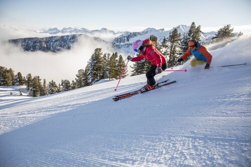 Sull’Altopiano di Passo Lavazé e il vicino Passo Oclini lo sci alpino si abbraccia allo sci di fondo e al biathlon proprio come il Catinaccio sembra collegarsi con il Latemar. I due massicci dolomitici fanno da cornice a questo anfiteatro naturale delimitato dal Corno Bianco e dal Corno Nero, palcoscenico per le quattro piste della Ski Area Passo Oclini / JochGrimm.