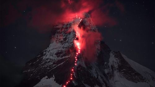 Per i 150 anni dalla prima ascensione, il Cervino si illumina di rosso
