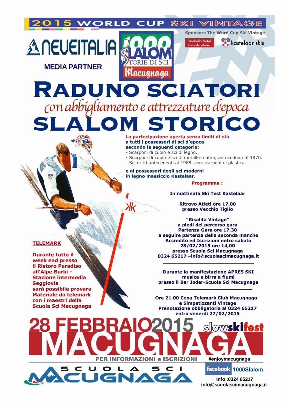 Parte anche quest’anno la seconda edizione di “1000 slalom - World Cup Ski Vintage”, l’evento dedicato alle discese con sci, scarponi e attrezzatura d’epoca. Un evento la cui caratteristica è la rievocazione dei periodi d'oro dello sci, quello di Stenmark, Thoeni, Zubbrigen, Zeno Colò o ancora più indietro, degli anni ’30, all'epoca dei pionieri dello sci.
