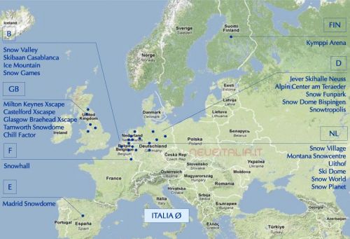 Nell'immagine seguente si vedono gli impianti per la pratica degli sport invernali in Europa.