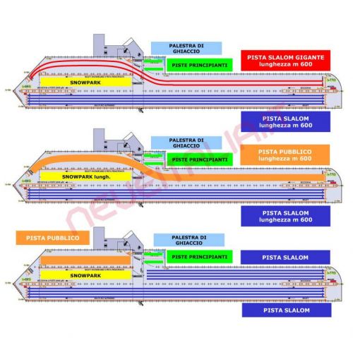Nel seguito il progetto esecutivo dello ski dome con il piano delle piste e le diverse sistemazioni possibili: