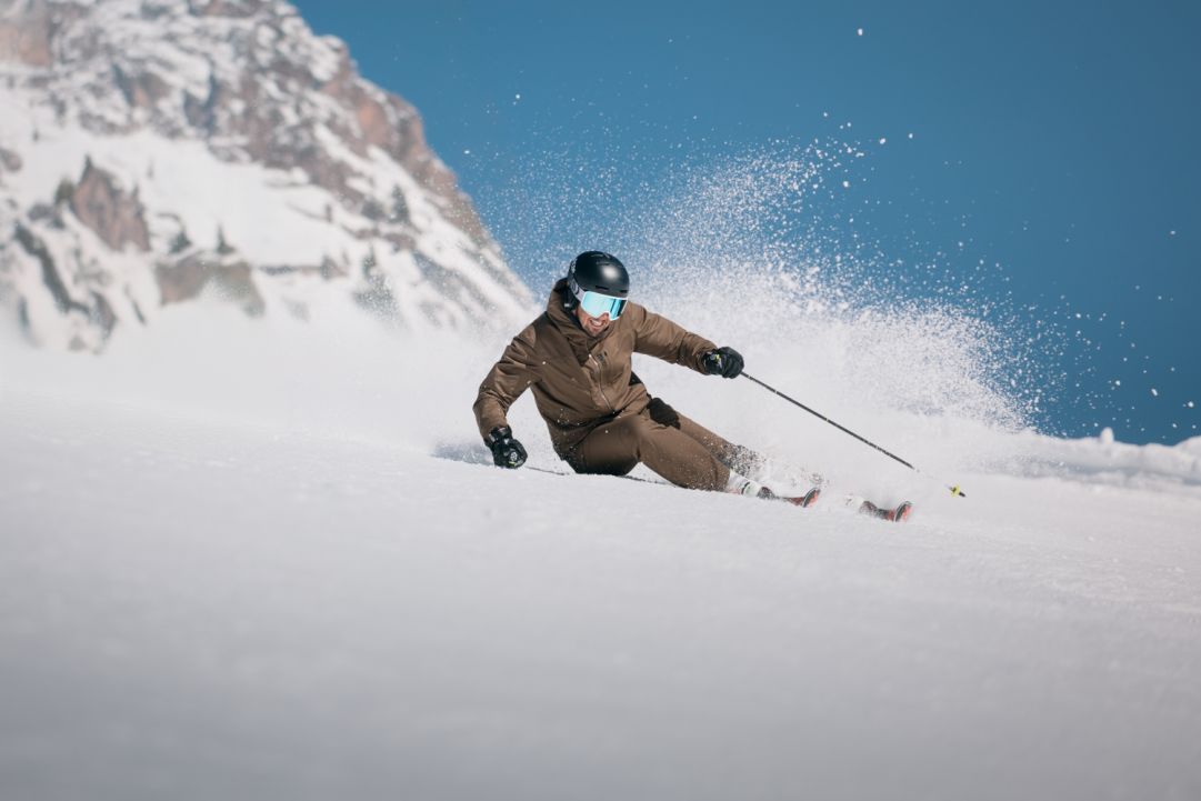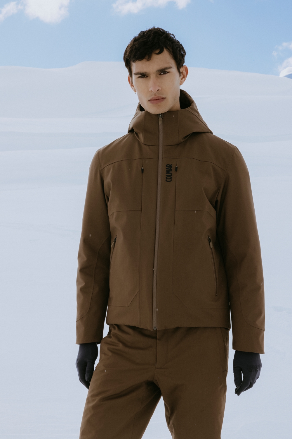 La giacca da sci “Urban performance” è realizzata in prezioso tessuto lana/poliestere laminato impermeabile con interno in ovatta Comfortemp Air 120gr, riciclata al 60%, che garantisce un comfort termico ottimale. Presenta capienti tasche frontali e interne applicate sulla fodera stretch con fibre di grafene, e lampo impermeabili lucide che rendono il capo un pezzo decisamente glamour. Disponibile nelle colorazioni marrone-teddy o marrone granola-teddy, prezzo: 769€. In abbinamento, il pantalone da sci maschile “Talent” presenta la stessa struttura tessile della giacca garantendo impermeabilità, traspirabilità e calore (in questo caso l’ovatta pesa solo 80gr). Inoltre, la rinnovata cintura elastica regolabile garantisce una perfetta adattabilità in vita. Prezzo: 439€.
