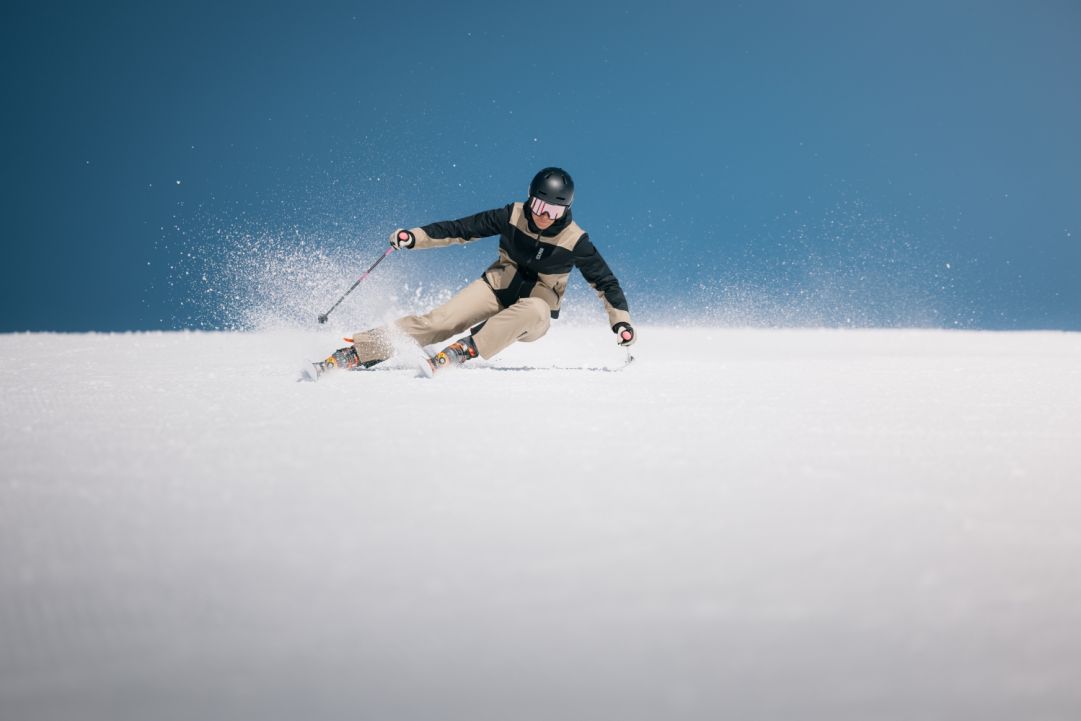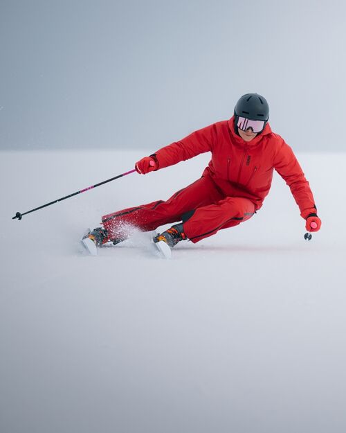 Per le donne che amano invece i colori accesi un buon punto di incontro è quello offerto dalla combo giacca “Connected – 3L Hard Shell” e il pantalone “Shell 3L”: realizzati entrambi con 3 strati di tessuto in nylon stretch da membrana riciclata, termosaldata e impermeabile, spiccano per il comfort e per la sicurezza in pista garantiti. La giacca, inoltre, è compatibile con altri modelli della collezione sci che la trasformano nel layer esterno ideale per affrontare anche le condizioni più ostiche. Disponibili nella colorazione rossa, prezzo: 509€-409€.
