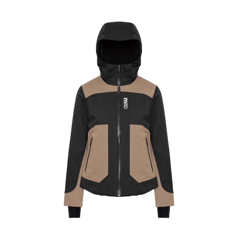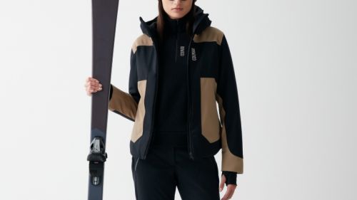 Per le donne, la parte superiore è costituita dalla giacca da sci “Urban performance”, realizzata in prezioso tessuto lana/poliestere laminato impermeabile con interno in ovatta Comfortemp Air 120gr, riciclata al 60%, che garantisce un comfort termico ottimale. Presenta capienti tasche frontali e interne applicate sulla fodera stretch con fibre di grafene, e lampo impermeabili lucide che rendono il capo un pezzo decisamente glamour. Disponibile nelle colorazioni nera o marrone granola, prezzo: 699€.