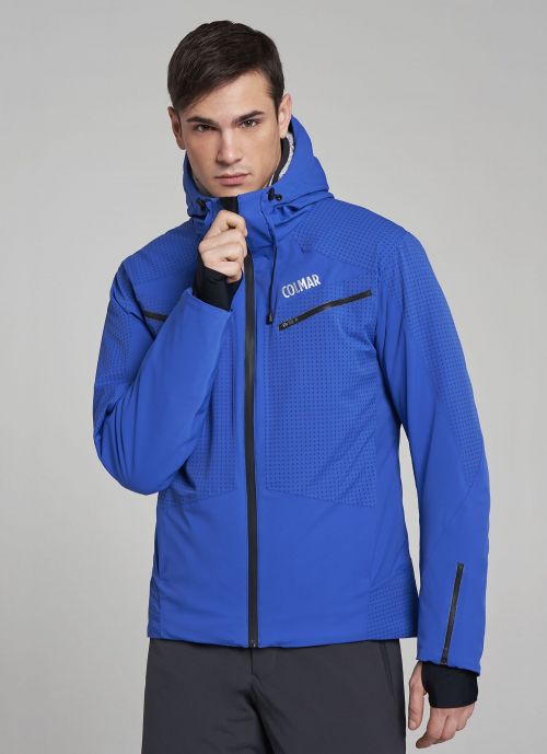 Giacca Erwin. La giacca sci da uomo Erwin, della linea Alpine, si distingue per i contrasti stampati e per il doppio cappuccio, che dona un look accattivante. Tessuto bielastico e calda imbottitura in ovatta 3M™ Thinsulate™ da 120 gr. Parzialmente termosaldata e laminata con membrana Colmar Proof-tech traspirante ed impermeabile (20.000 mm di colonna d’acqua). Clicca qui per maggiori informazioni.