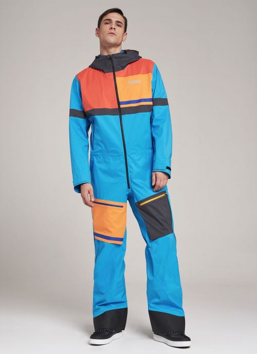 Tuta da sci Spacerace. Un pezzo iconico degli anni '80, reinterpretato con colori vivaci. Questa tuta sci da uomo della capsule Spacerace combina semplicità e resistenza ad alte performance tecniche. Tessuto principale a tre strati bielastico, accoppiato ad una leggera maglina che evita l'uso di fodere, rendendo il capo più pratico. Totalmente termosaldata e laminata con membrana tecnica impermeabile Dermizax® (20.000 mm di colonna d'acqua). Clicca qui per maggiori informazioni