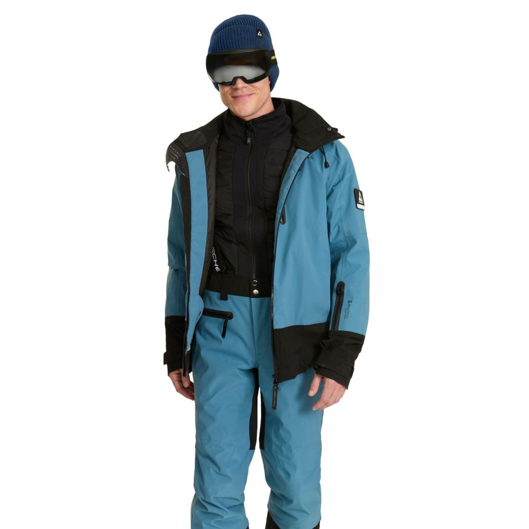 La protezione completa integra, inoltre, soluzioni tecniche già consolidate nel mondo Fischer, come il tessuto Evotexx® 20K/20K impermeabile e traspirante, le cuciture termosaldate, la zip YKK waterproof, i regolatori Cohaesive® utilizzabili anche con i guanti, i tiretti ergonomici, le fodere interne tecniche (3D mesh, tricot, nylon per snow-gaiter), le 7 tasche esterne (petto, mani, skipass, ventilazione). Queste combinazioni rendono il capo pulito, con linee ed estetiche orientate alla funzionalità e con una palette di colori che privilegia tonalità durature e coerenti (azzurro e nero) con l’obiettivo di offrire capi per un uso prolungato nel tempo e in condizioni differenti, dalla pista al fuoripista, dal meteo sereno alla pioggia e alla neve.