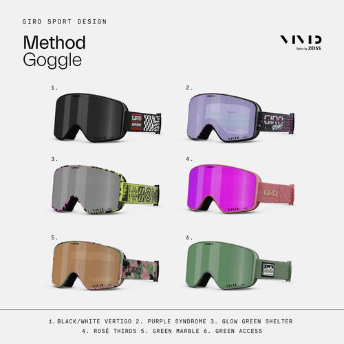 La maschera Method Vivid , dal design accattivante e vagamente retrò è realizzata per chi pretende la massima visibilità unita a stile e comodità. Vanta un ampio campo visivo e la migliore tecnologia per la visuale in ogni condizione di luce grazie alle lenti Vivid by Zeiss che migliora no l’esperienza visiva sulla neve aumentando il contrasto e la definizione. L’EVAK Vent Technology mantiene sotto controllo l'appannamento anche durante gli sforzi più intensi e la morbida imbottitura per il viso con rivestimento in micropile garantisce il miglior comfort per tutta la durata del giorno.
