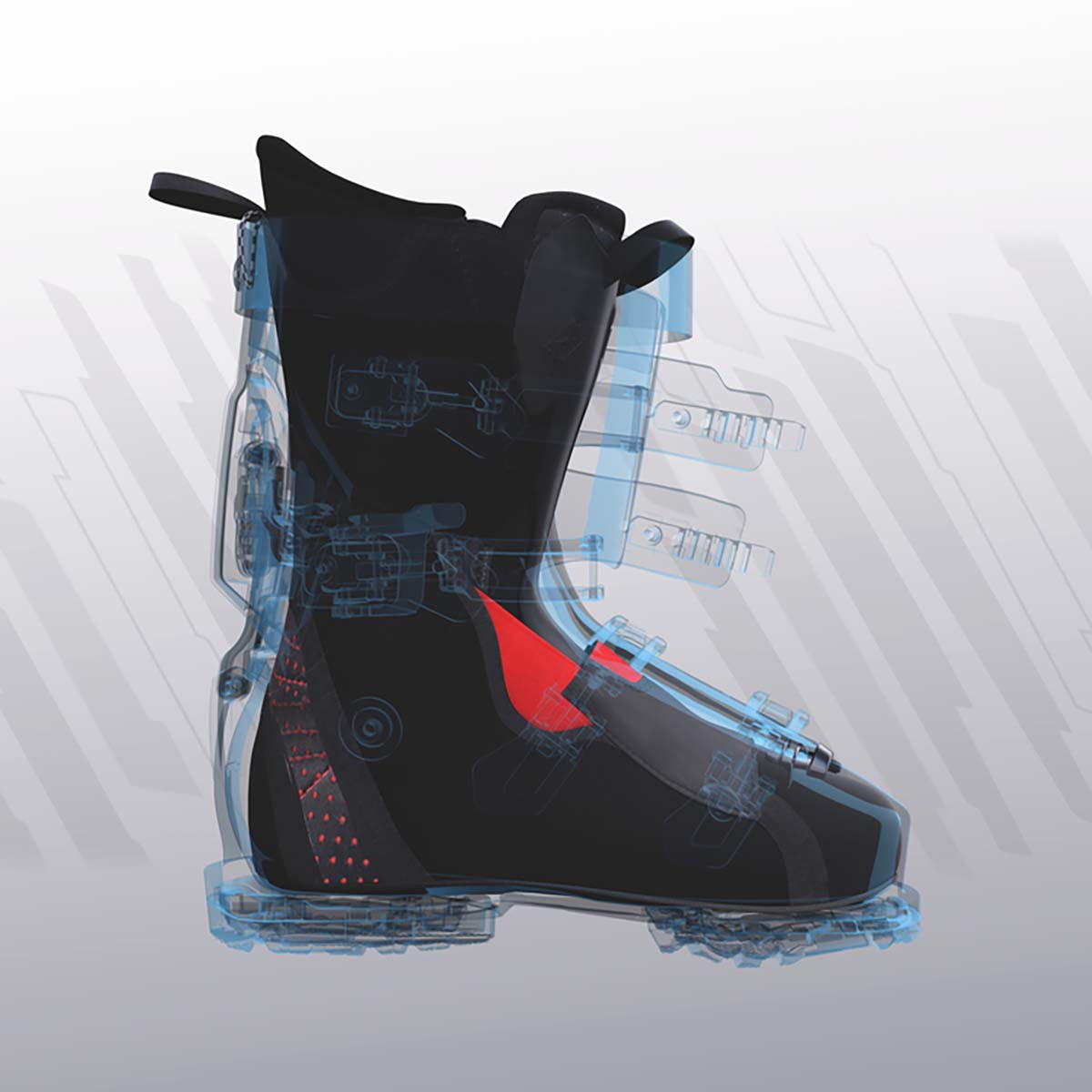 La possibilità di calzarlo e scalzarlo in modo estremamente semplice, senza aiutarsi con le mani, come una normale scarpa bassa. Il tutto senza compromettere le prestazioni in sciata di un modello quattro ganci pensato per la performance. Il segreto sono quattro piccoli accorgimenti, due dei quali in attesa di registrazione del brevetto, sviluppati completamente in Italia, nel centro ricerca e sviluppo Rossignol a Montebelluna (TV) nel distretto italiano di eccellenza della calzatura tecnica.