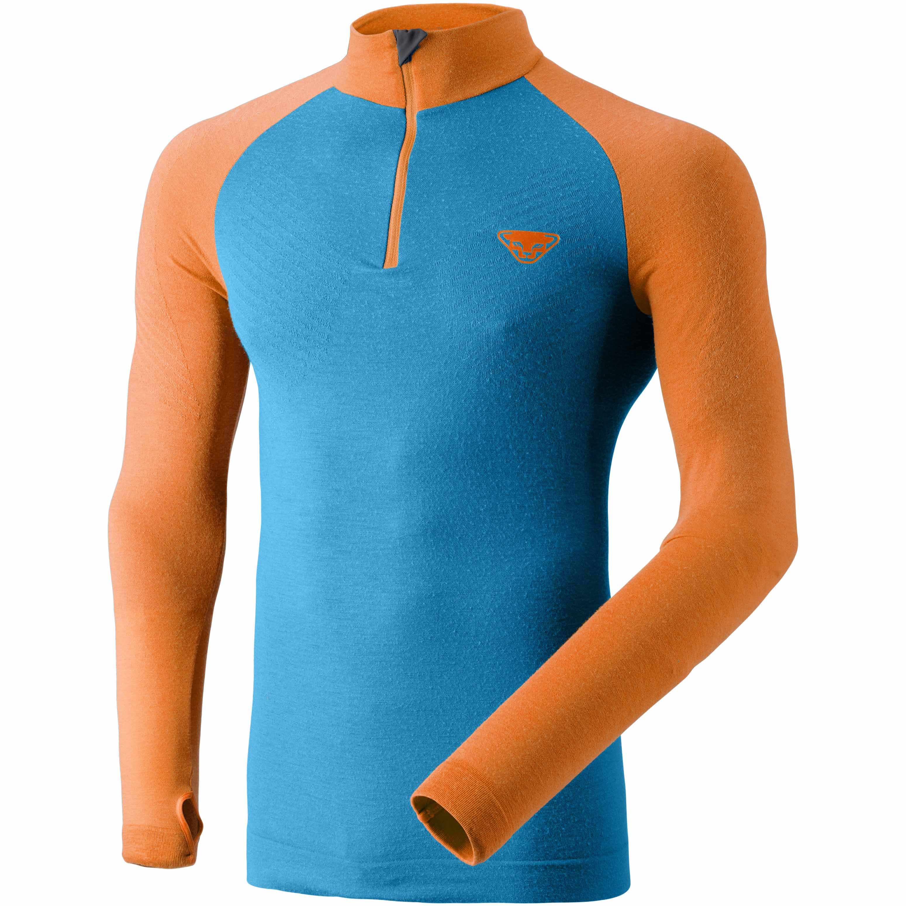 La maglia a manica lunga Tour Dryarn di DYNAFIT, dal taglio aderente e dotata di pratiche aperture per il pollice che impediscono alle maniche di scivolare, è realizzata con una combinazione di lana Merino e Dryarn. Una soluzione che offre un elevato mantenimento del calore e allo stesso tempo una traspirazione e asciugatura rapida, sia lungo le salite più faticose che durante le discese in neve fresca. La presenza di lana Merino, inoltre, aiuta a ridurre la formazione di cattivi odori. La zip frontale consente una maggior aereazione e permette di indossare e sfilare il capo ancor più facilmente. La maglia, prodotta in Europa, è realizzata quasi interamente senza cuciture, così da ridurre al minimo possibili sfregamenti e irritazioni.
