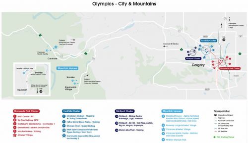 Ristrutturare gli impianti esistenti, spesso costruiti per i Giochi del 1988, e limitare le nuove costruzioni è la parola d'ordine del progetto di Calgary che si articola su 3 cluster cittadini e le località montane che diventarono famose in occasione delle edizioni precedenti.
