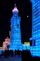 Torri gigantesche, impressionanti palazzi, ponti, scivoli e spettacolari cattedrali si costruiscono da singoli blocchi e mattoni di ghiaccio. Essi vengono estratti dal fiume ghiacciato di Songhua, che divide la città in una sponda nord e sud. Anche Sun-Island, il parco estivo di ricreazione di Harbin, nei mesi invernali cambia e si trasforma nella cosiddetta Snow-World, dove artisti internazionali creano gigantesche sculture di neve.