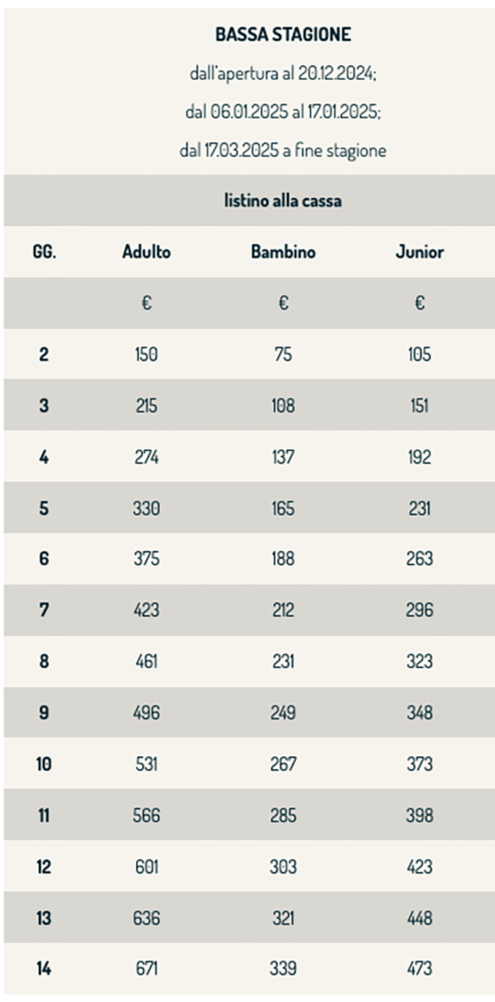 Skipass Bassa Stagione Superskirama Adamello-Brenta 2024/25