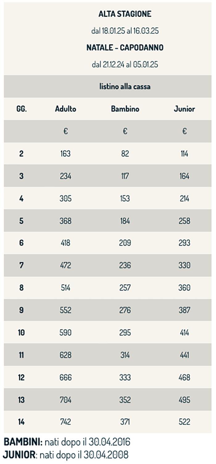Skipass Alta Stagione Superskirama Adamello-Brenta 2024/25