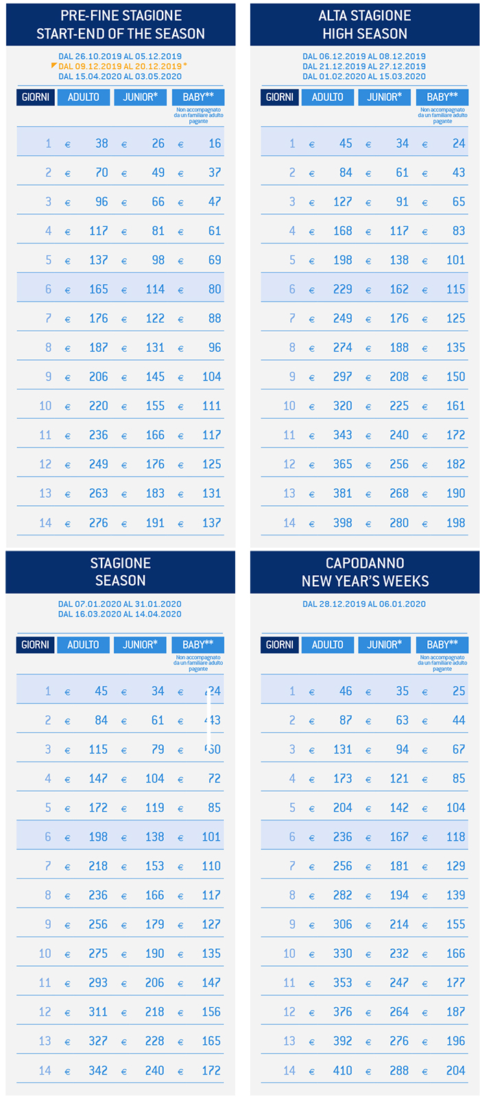 Skipass Passo del Tonale, Ponte di Legno, Presena, Temù 2019/2020