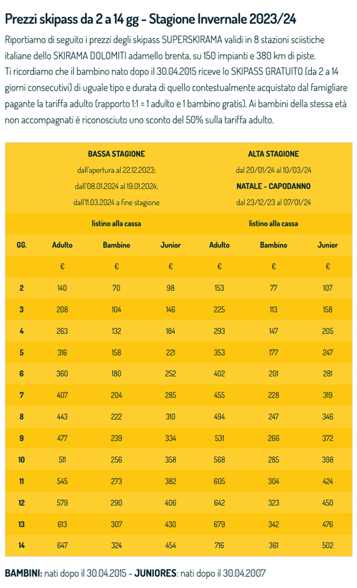 Skipass Superskirama Dolomiti Adamello-Brenta 2023/2024